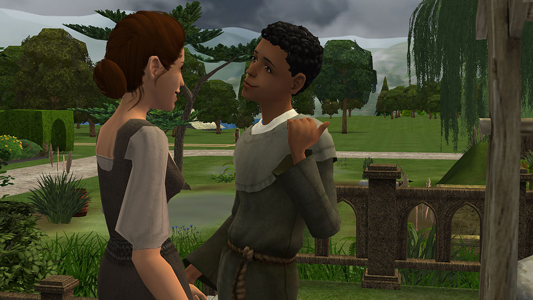 (Lady Primrose actually helped water the baby trees. She can be snooty, but seems to enjoy helping out the peasants every once in a while).
