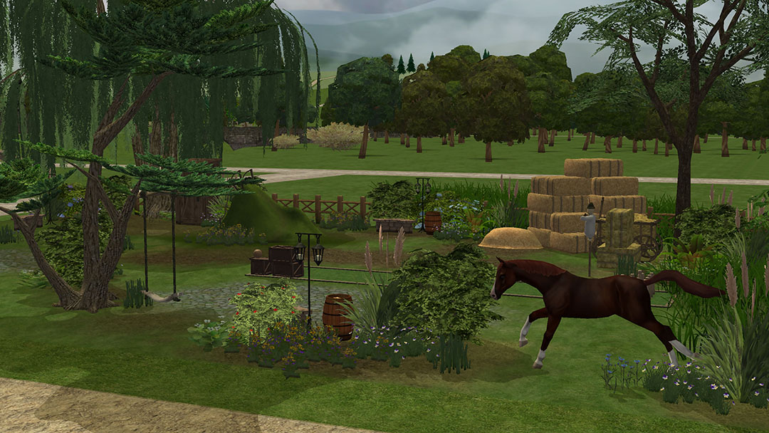 Driftwood gets a village green! There’s not all that much here since markets and festivals are things we unlock later, but the villagers get a swing, public archery range, hay bale to jump on, and a game of skittles.