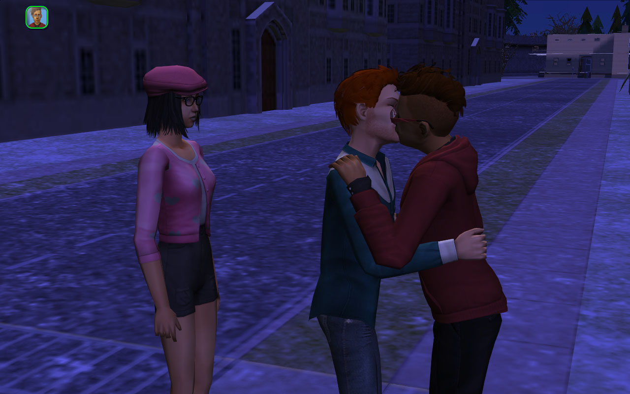 I moved Victor Perry and Calvin Straight in with them, because Romeo kept rolling wants for Calvin to come to college. I don’t remember why Victor moved in too, because neither Juliette nor Romeo like him very much. Oh well!