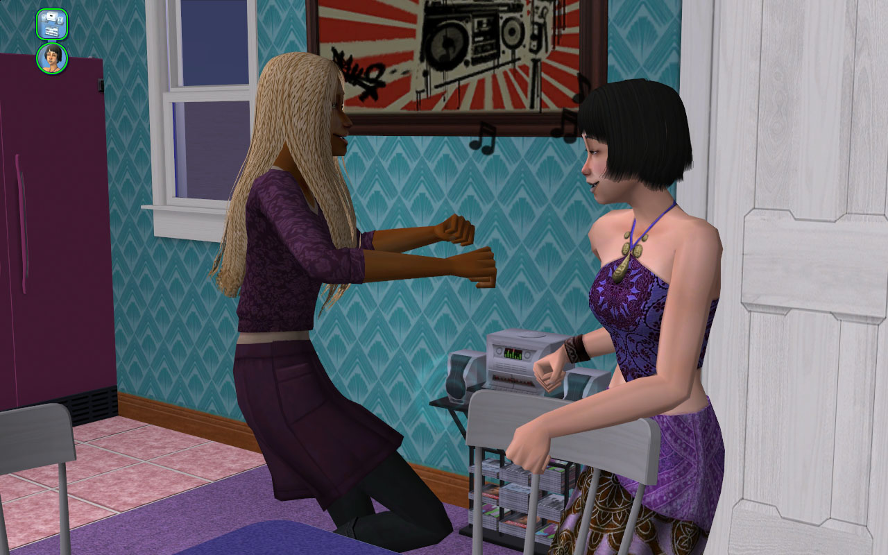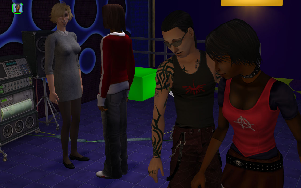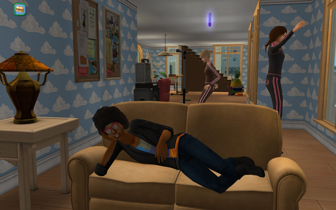 Sorority life! I put some fun skill objects around so they I can mostly free-range without them all failing. I think of these girls as a bit of an alternative Greek to the more stereotypical Tri-Var sorority.