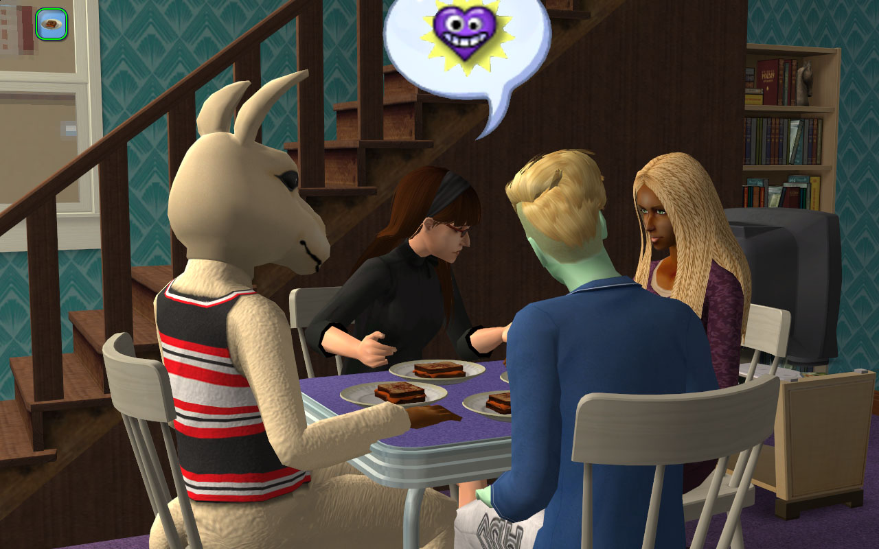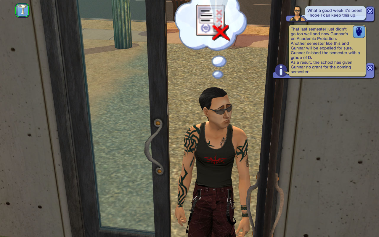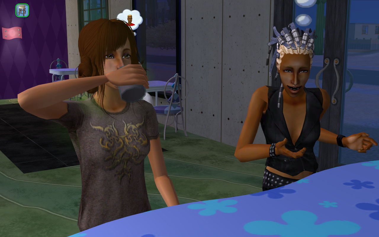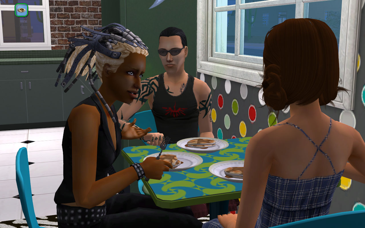 Gunnar is getting on well with this dormie. She’s no Jessie Pilferson (who’s probably his sexual soulmate), but that “woohoo with 20 different sims” LTW isn’t gonna fufill itself!