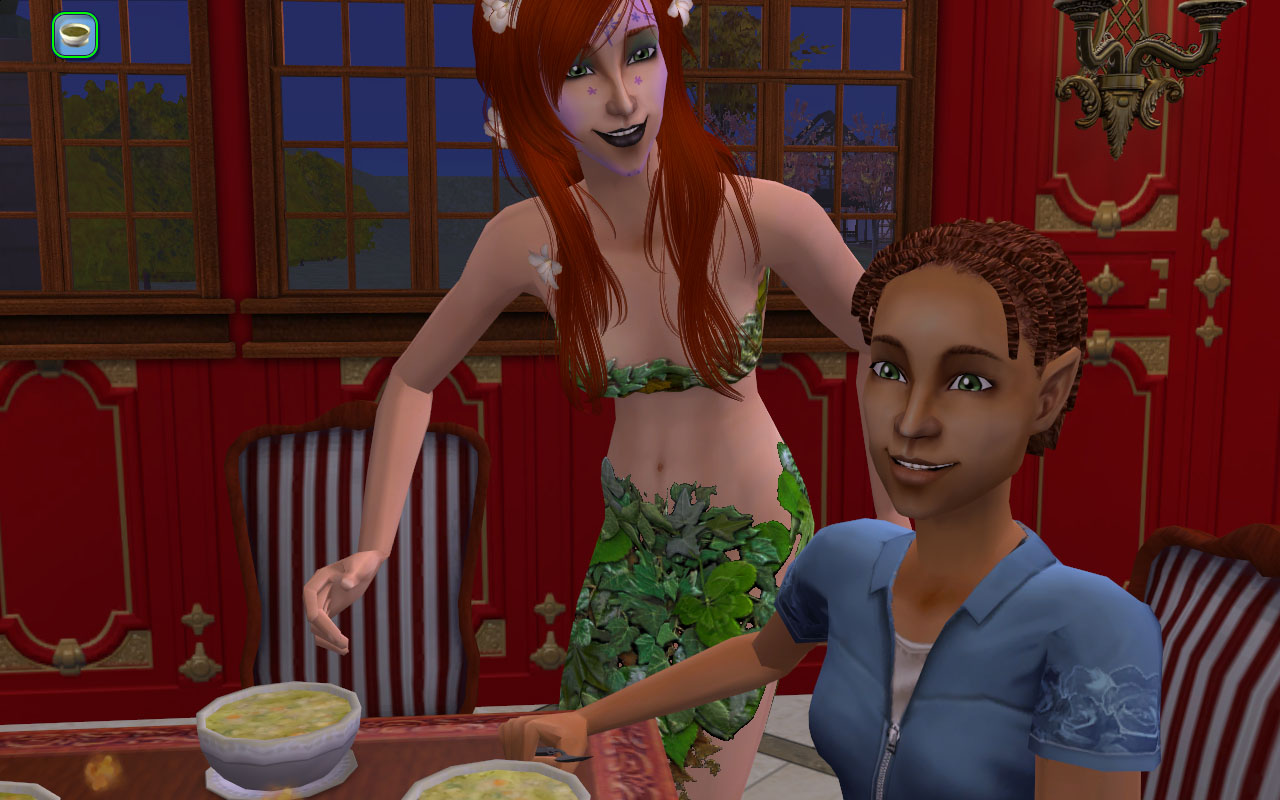 Bottom (by far the most “normal” sim in the family) spends almost all her time chatting to her friends on the phone. (That’s Benedick Monty <3, Hal Capp, Desdemonda Capp, Lucy Burb, and Dixie Land, for anyone curious). I’m starting to wish I’d given her a popularity secondary! Ah well, there’s always the college re-roll.