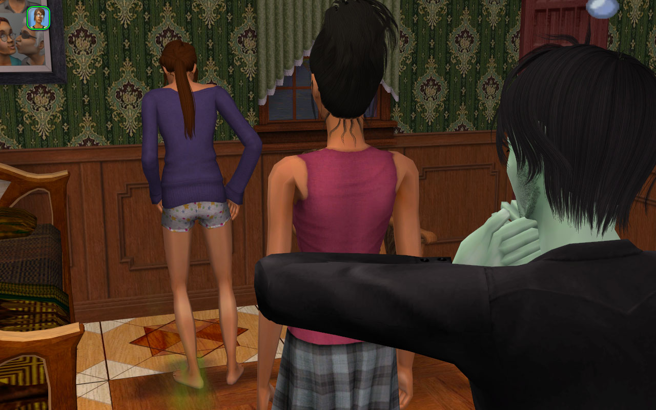 This sure was a thing that happened at one point, though! Junior just sort of wandered into their house to goose Mary. The action timed out, but still… His behavior is starting to feel sort of predatory and I’m half hoping Valentine kicks his ass.