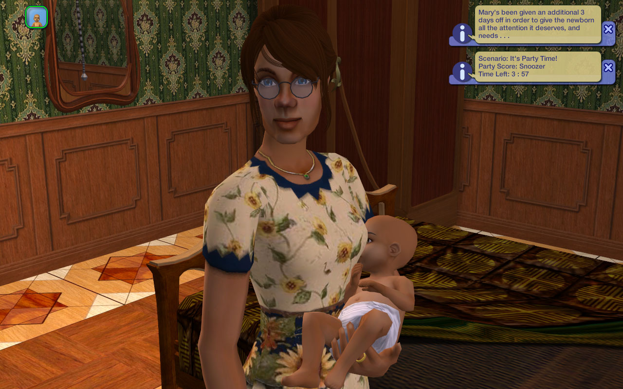 Mary’s pregnant again! Luckily, she’s learning how to take it easy, and spends most of her pregnancy lounging around in a rather sexy maternity outfit I’m guessing Valentine picked out for her.