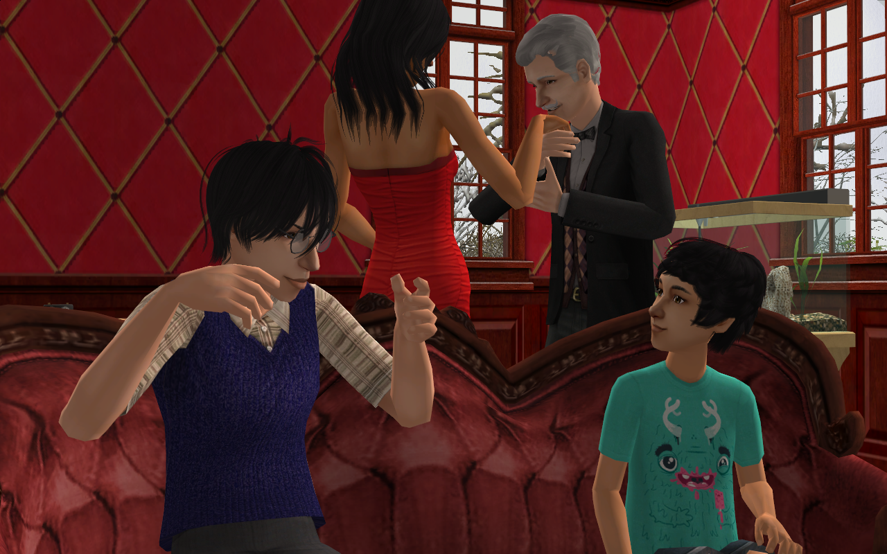 When they head upstairs to re-consummate their marriage and find it already occupied, Bella is horrified. For a romance sim, she’s a bit of a prude. Then again, it is her teenage son.