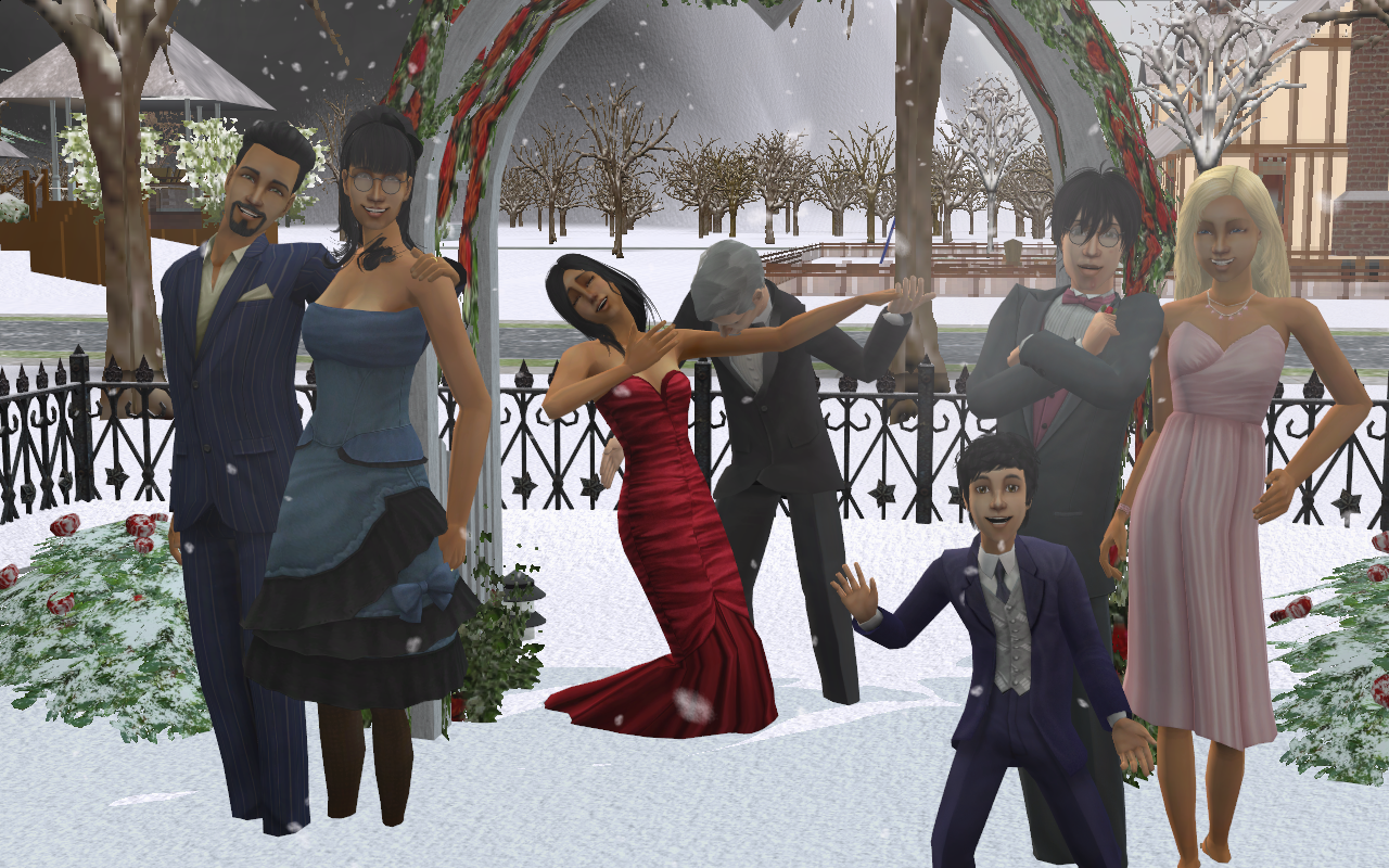 Since it was snowing, and that was the weather Bella (and I) originally wanted for the wedding, I re-shot a quick wedding photo. Here’s all the Goth-Lotharios!