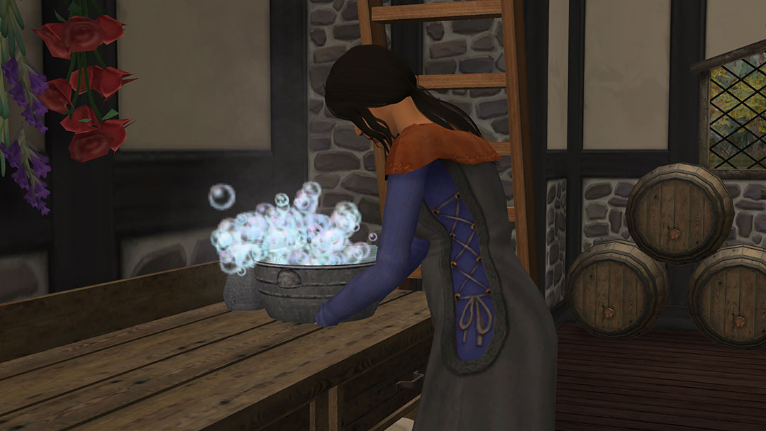 Business is slow for the first day, with the patrons spending more time playing cards than buying drinks. Maybe I need to get rid of that thing! Roberte comes along for moral support, and her sister Helen also comes by to see the new tavern. Not sure Helen should really be drinking again when hse is pregnant, but she seems to love ignoring midwife advice.