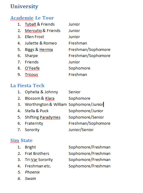 Here’s where I am with the uni students, by the way! I’m not playing them very strictly, but I’m aiming to have Johnny, Ophelia, Tybalt, Tank and Mercutio all be seniors or so when I stop playing university & go back to the main hood for the Winter rotation. I want the premade-teen-but-not-quite-old-enough brigade (the Pleasantview kids, Ripp Grunt, Miranda Capp, Scot Land, David Ottomas and Woody Weiss) to have a chance to hang out with their friends at uni.