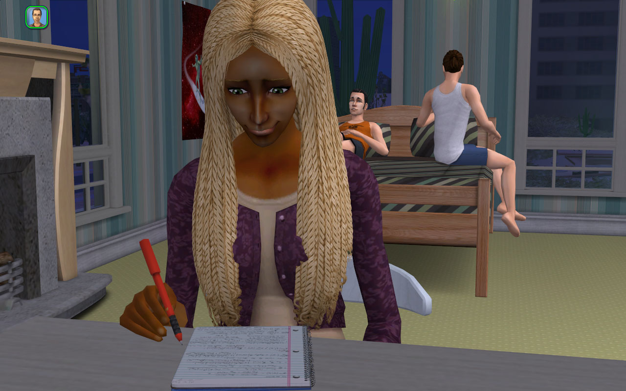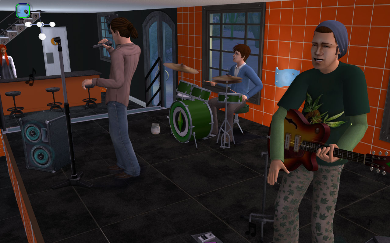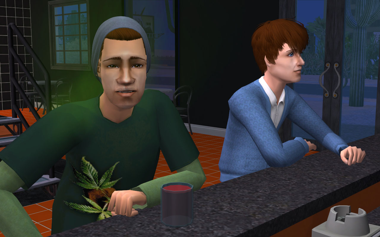 The outside is almost exactly the same, but I added an guitar so that some sim (in this case, DJ) can be “that douche bag with the acoustic guitar at the coffee shop”.