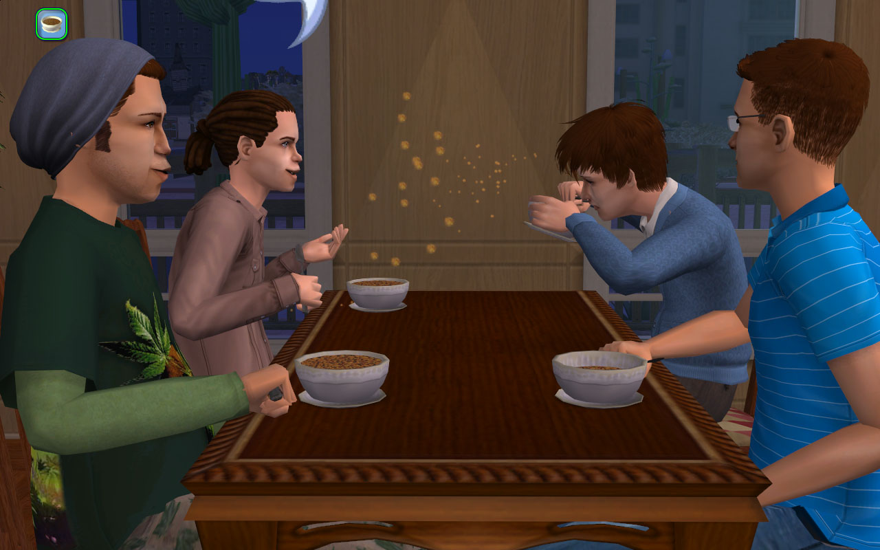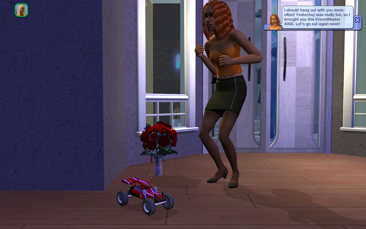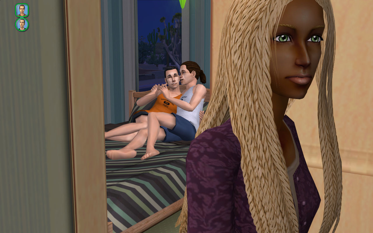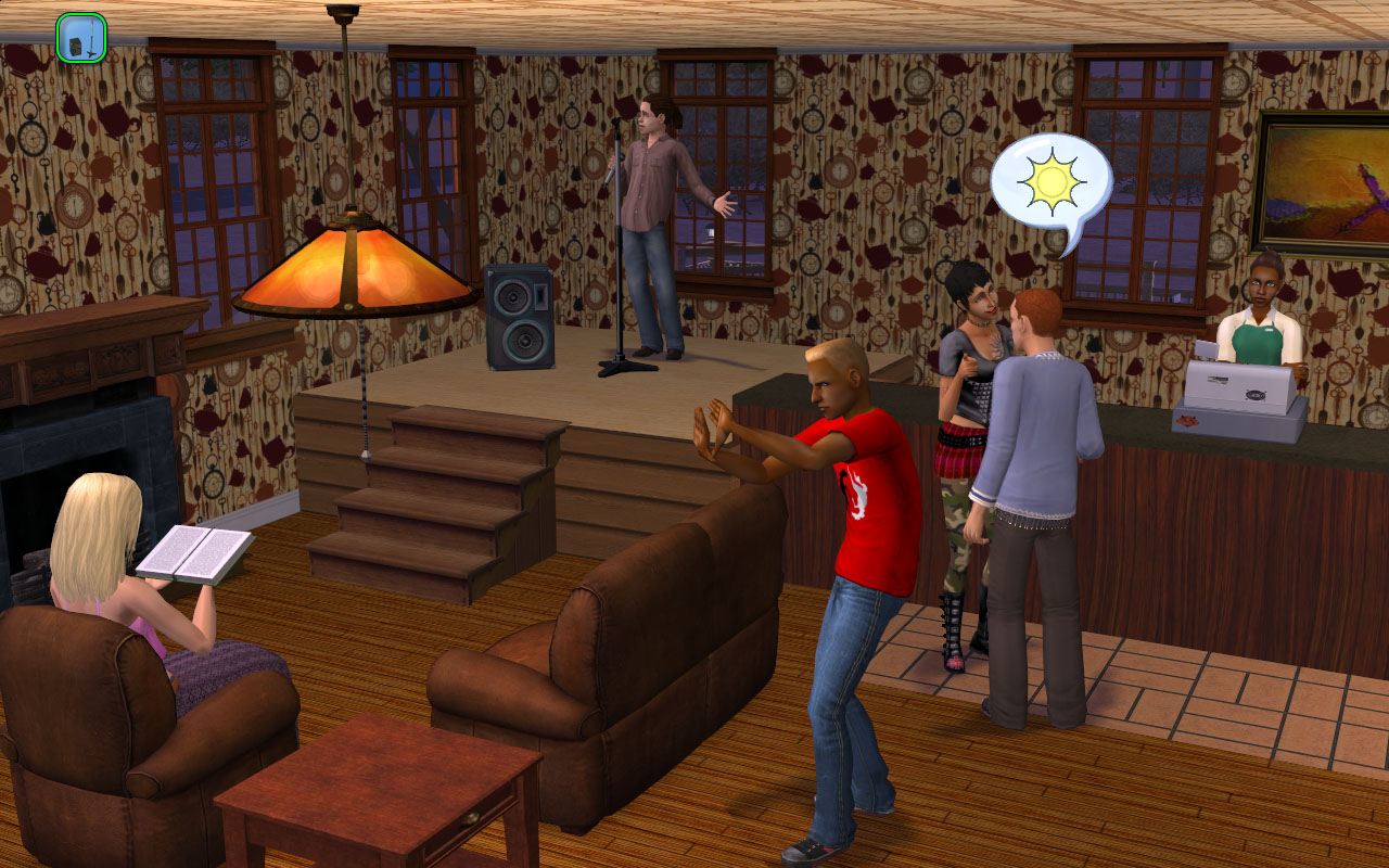 The outside is almost exactly the same, but I added an guitar so that some sim (in this case, DJ) can be “that douche bag with the acoustic guitar at the coffee shop”.