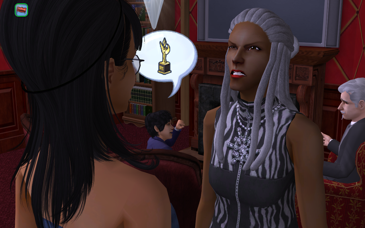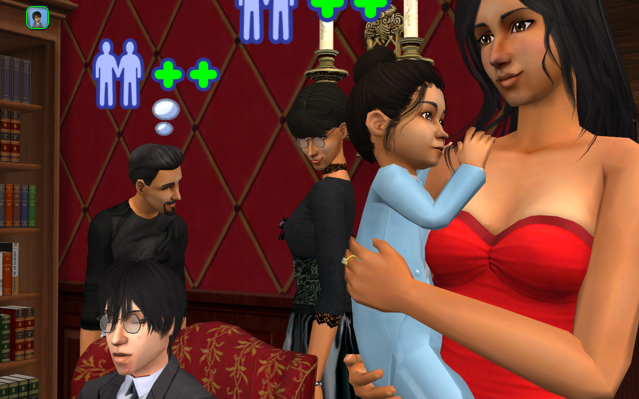 When they head upstairs to re-consummate their marriage and find it already occupied, Bella is horrified. For a romance sim, she’s a bit of a prude. Then again, it is her teenage son.