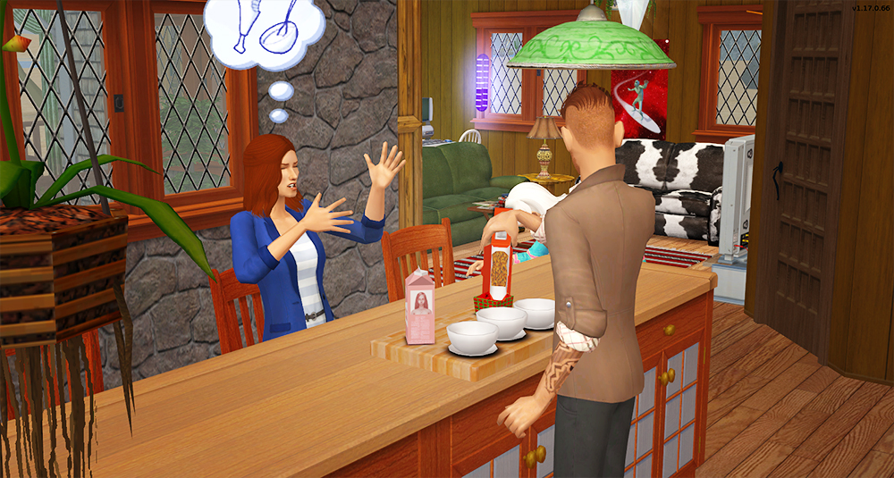 Erin: “Making cereal”, he says. How long does it take to pour it into a damn bowl?